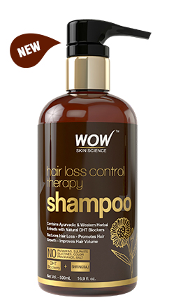 WOW Skin Science Hair Loss Control Therapy Shampoo with advanced and powerful anti-hair loss action that reduces hair fall by naturally blocking the DHT hormone proven by research to be responsible for hair loss. Anti-hair fall actives like biotin, saw palmetto, rosemary and niacin are powerful DHT blockers that help in reviving dying hair roots and preventing hair thinning and loss. This shampoo also contains well-documented pro-hair growth ayurvedic ingredients like bhringraj(king of herbs), amla, neem, henna, shikakai and lemon. This powerful blend ensures your hair healthy and strong after regular use. The ultimate hair loss control therapy with multiple hair benefits. Totally free from sulphates, parabens, artificial fragrance, silicones, color or salt.