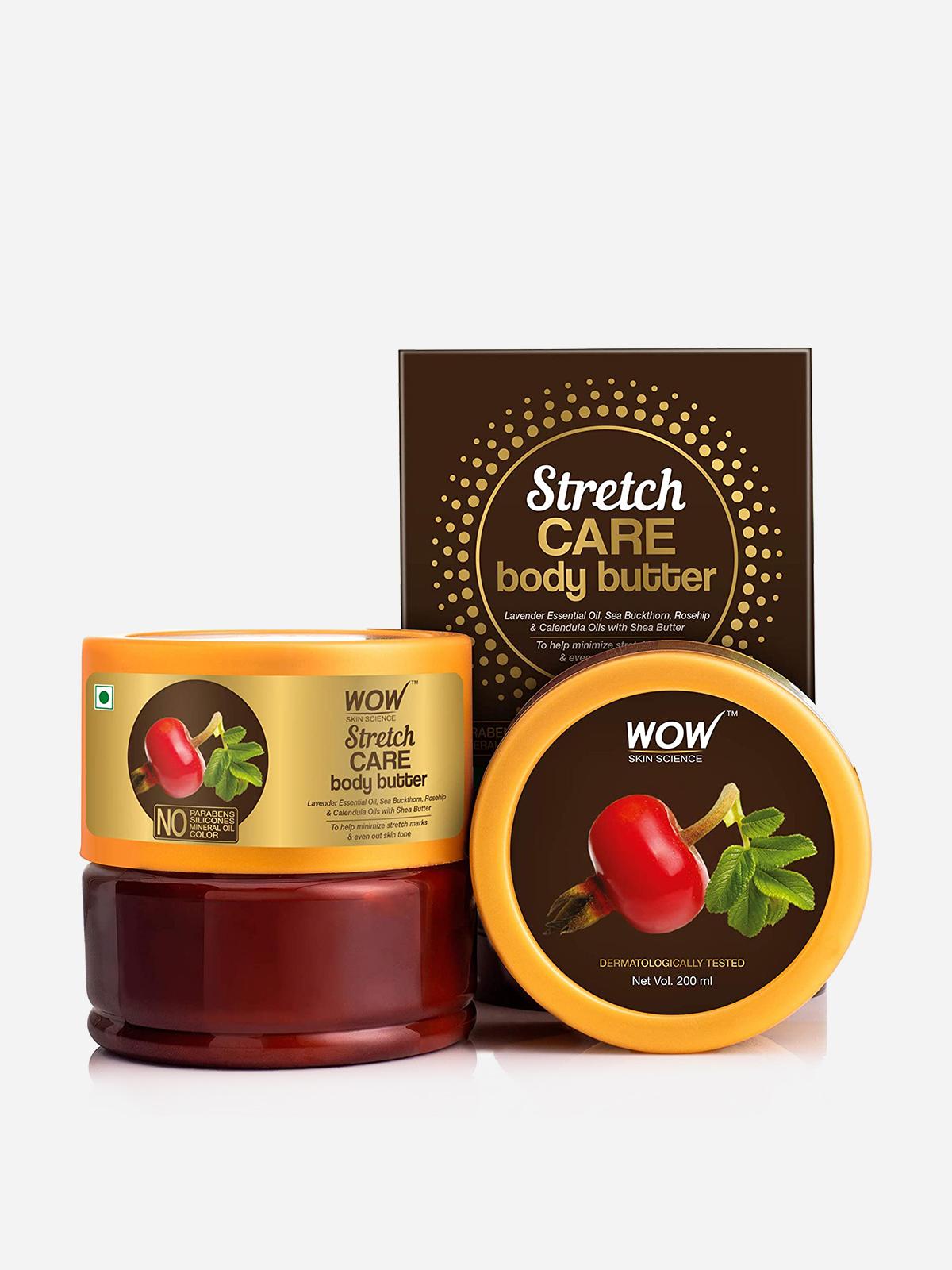 Restore skin’s natural smoothness and help fade marks and scars with WOW Skin Science Stretch Care Body Butter. Delivers the goodness of sea buckthorn, rosehip, calendula, and lavender essential oil to help fade stretch marks, reduce spots and protect skin from damage. The blend of essential nutrients, vitamin A and fatty acids helps to strengthen the skin structure to fade deep scars and striations. The stretch care body butter aids in managing overall skin health.