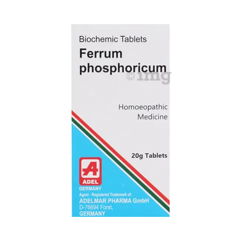 ADEL Ferrum Phosphoricum Biochemic Tablet is a useful drug in building healthy blood cells. It helps in providing toughness and strength to the walls of blood vessels and arteries. It is an excellent remedy for hemorrhages and is also helpful in reducing stiffness and pain in joints. Sore throat, cough and cold are also cured using this medicine.
