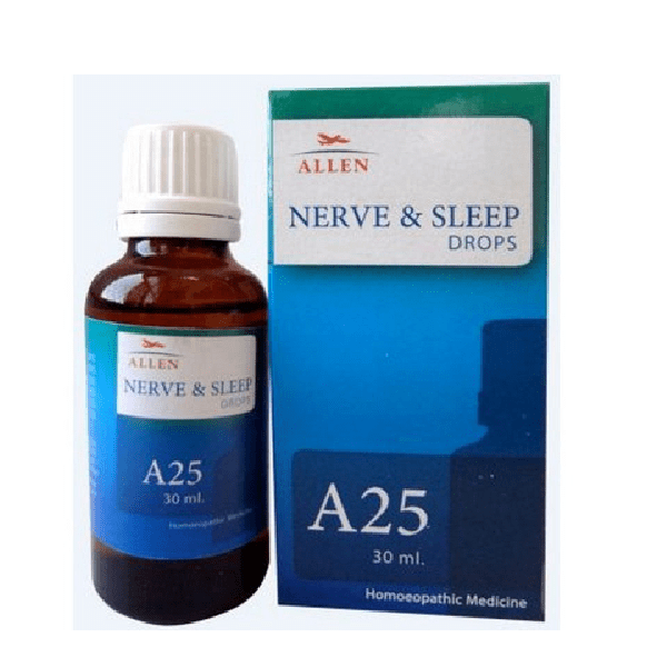 A25 Nerve and Sleep Drops is indicated for sleepiness, drowsiness in the morning, nervous restlessness and light sleep. Composition of Allen A25 Nerve and Sleep Drops Passiflora Incarnate Q Avena Sativa Q Chamomilla 3x Valeriana Officinalis 3x Ignatia Amara 3x Ammonium Bromidum 3x in aqua destillata